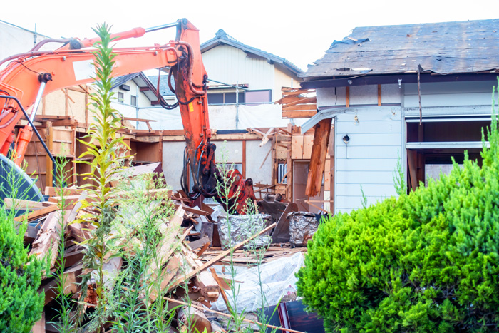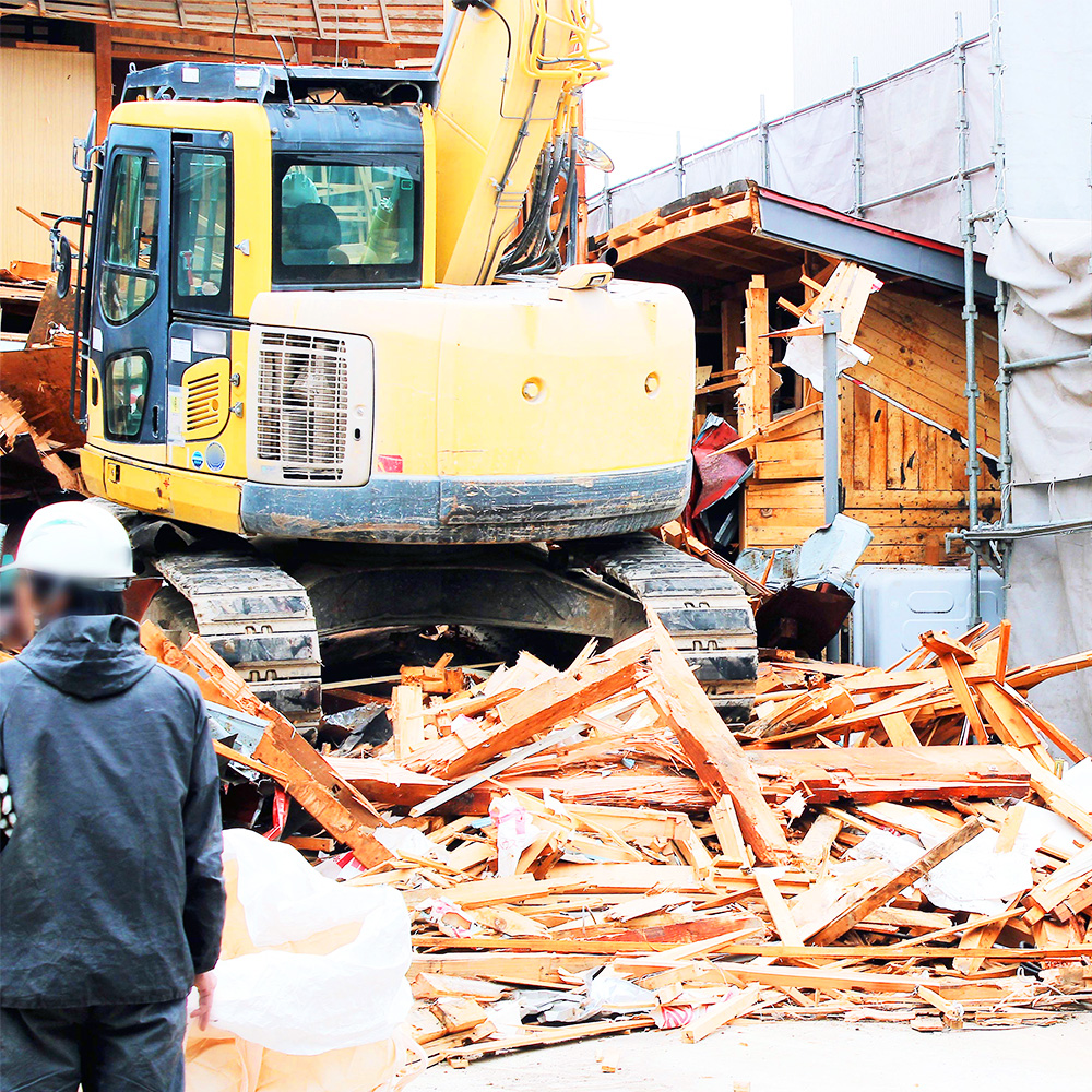 木造・鉄骨造・RC造など建築物解体や店舗・住宅の内装解体など建物の大小にかかわらず解体工事全般を承っており、「安全で確実な施工」をモットーに、他の工事に比べて危険な作業となる建物の解体をスピーディーかつ安全に行うよう努めております。